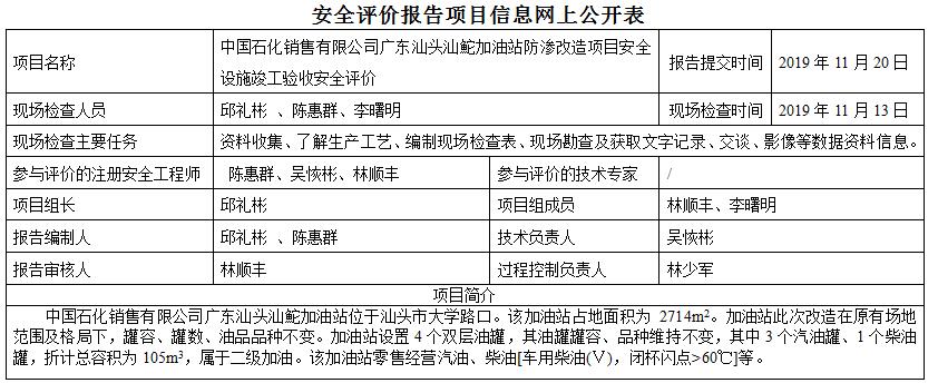 中国石化销售有限公司广东汕头汕鮀加油站防渗改造项目安全设施竣工验收安全评价