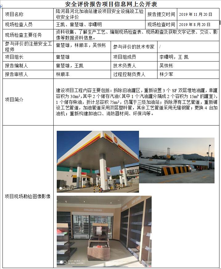 陆河县河北加油站建设项目安全设施竣工验收安全评价