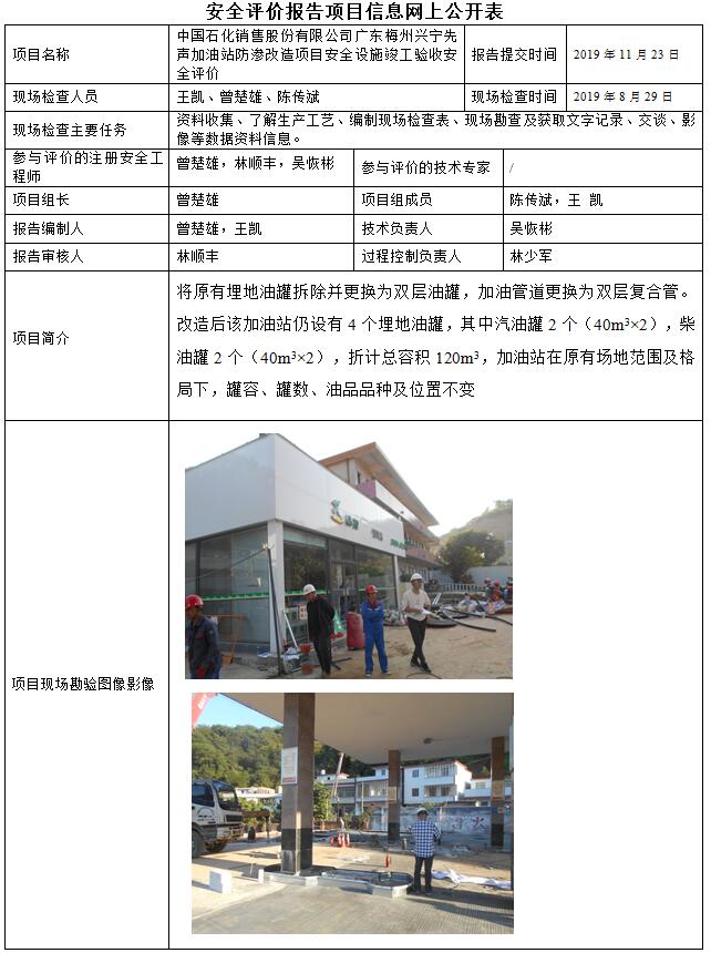中国石化销售股份有限公司广东梅州兴宁先声加油站防渗改造项目安全设施竣工验收安全评价