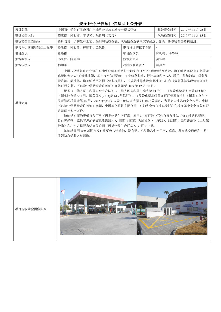 中国石化销售有限公司广东汕头金特加油站安全现状评价