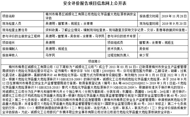 梅州市梅县区诚辉化工有限公司危险化学品重大危险源核销安全评估