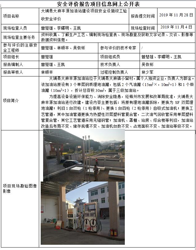 大埔县大麻丰源加油站建设项目安全设施竣工验收安全评价