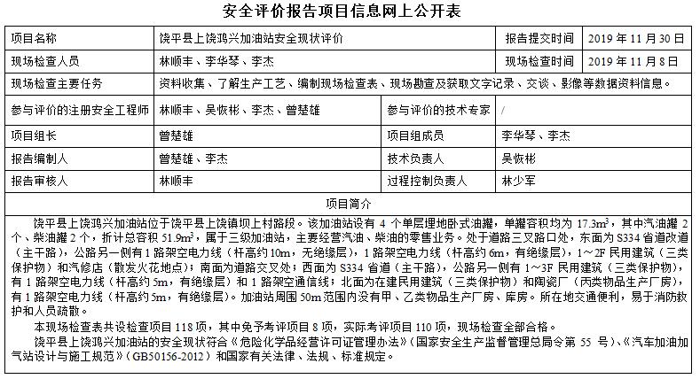 中国石化销售有限公司广东潮州饶平民信加油站安全现状评价
