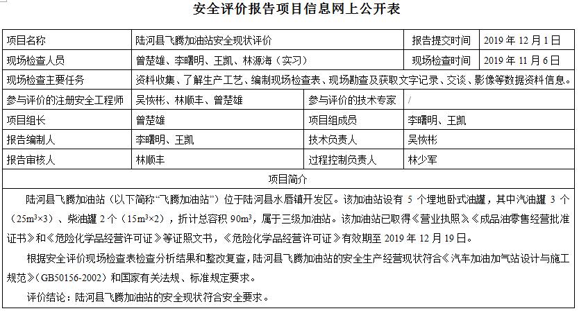 大埔县茶阳顺通加油站建设项目安全设施竣工验收安全评价