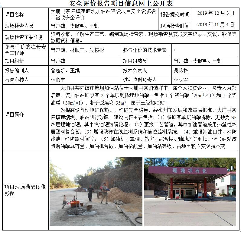 大埔县茶阳镇莲塘坝加油站建设项目安全设施竣工验收安全评价