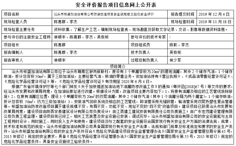 汕头市彬盛加油站有限公司防渗改造项目安全设施竣工验收安全评价
