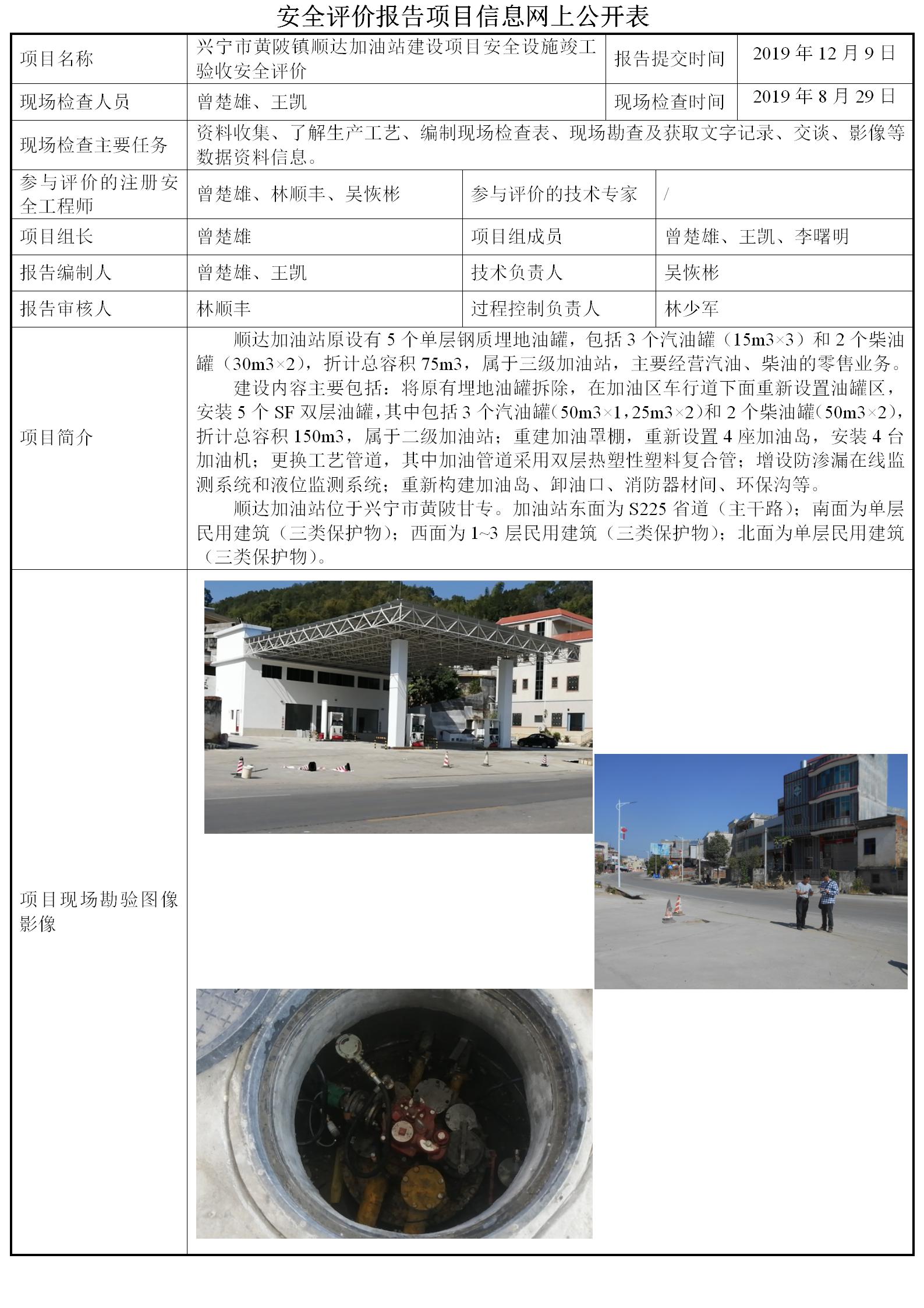 兴宁市黄陂镇顺达加油站建设项目安全设施竣工验收安全评价