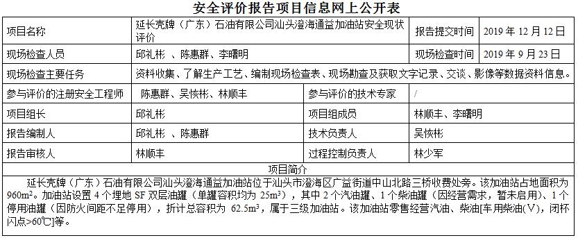 延长壳牌(广东)石油有限公司汕头澄海通益加油站安全现状评价