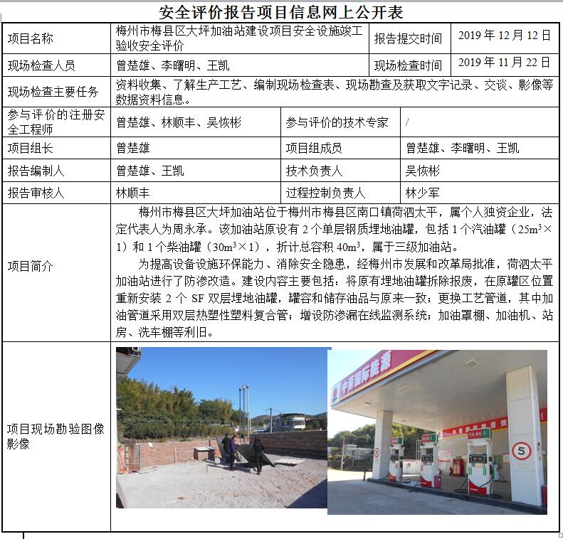梅州市梅县区大坪加油站建设项目安全设施竣工验收安全评价