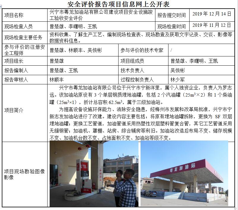 兴宁市粤龙加油站有限公司建设项目安全设施竣工验收安全评价