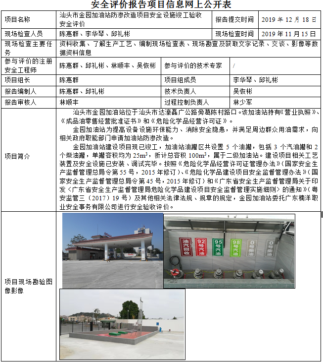 汕头市金园加油站防渗改造项目安全设施竣工验收安全评价