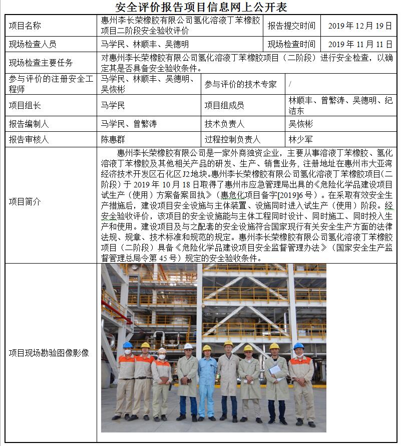 惠州李长荣橡胶有限公司氢化溶液丁苯橡胶项目二阶段安全验收评价