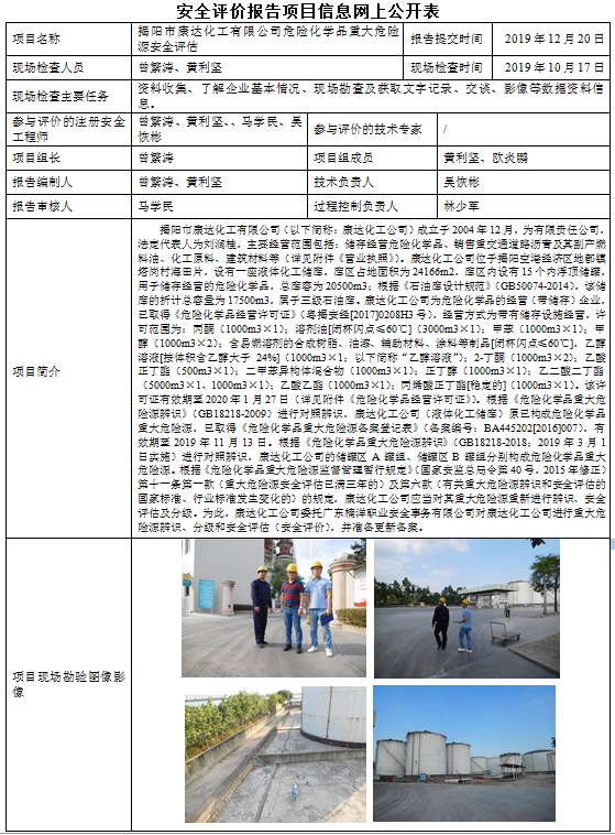 揭阳市康达化工有限公司危险化学品重大危险源安全评估