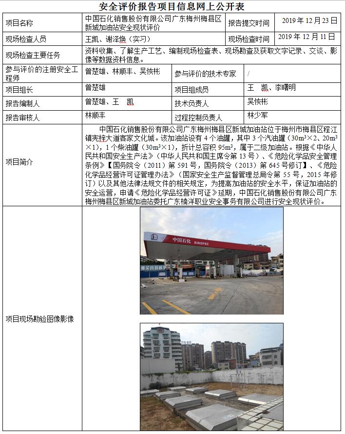 中国石化销售股份有限公司广东梅州梅县区新城加油站安全现状评价报