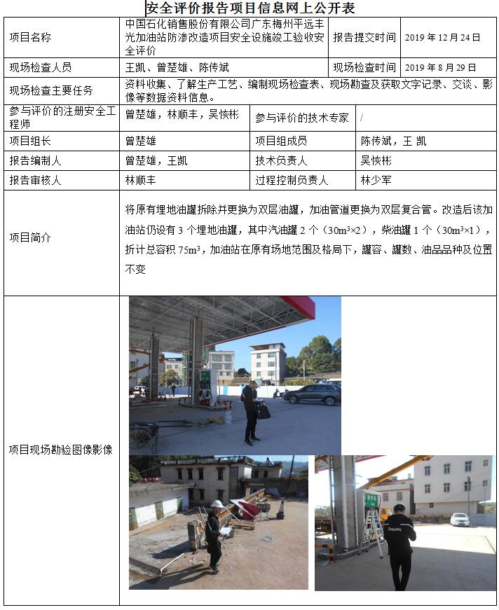 中国石化销售股份有限公司广东梅州平远丰光加油站防渗改造项目安全设施竣工验收安全评价