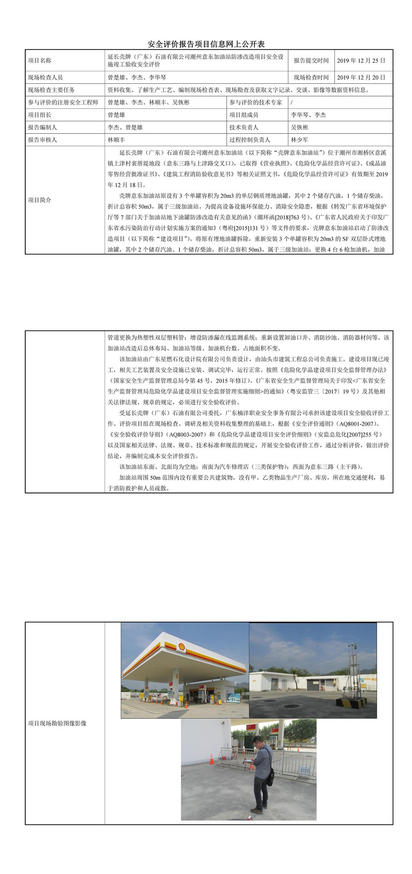 延长壳牌(广东)石油有限公司潮州意东加油站防渗改造项目安全设施竣工验收安全评价