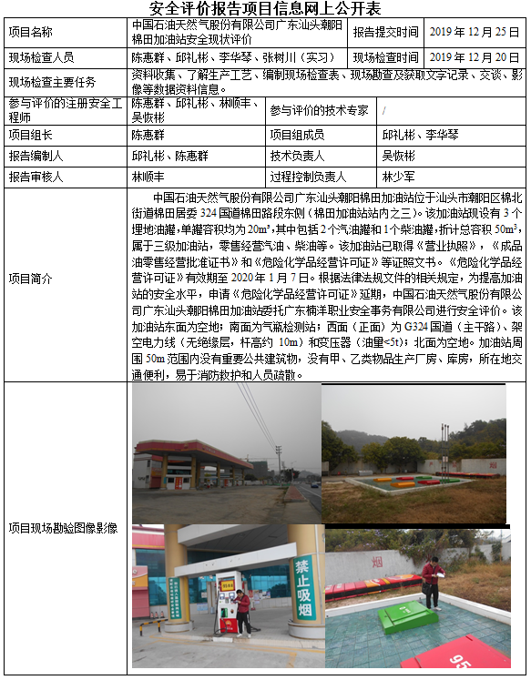 中国石油天然气股份有限公司广东汕头潮阳棉田加油站安全现状评价