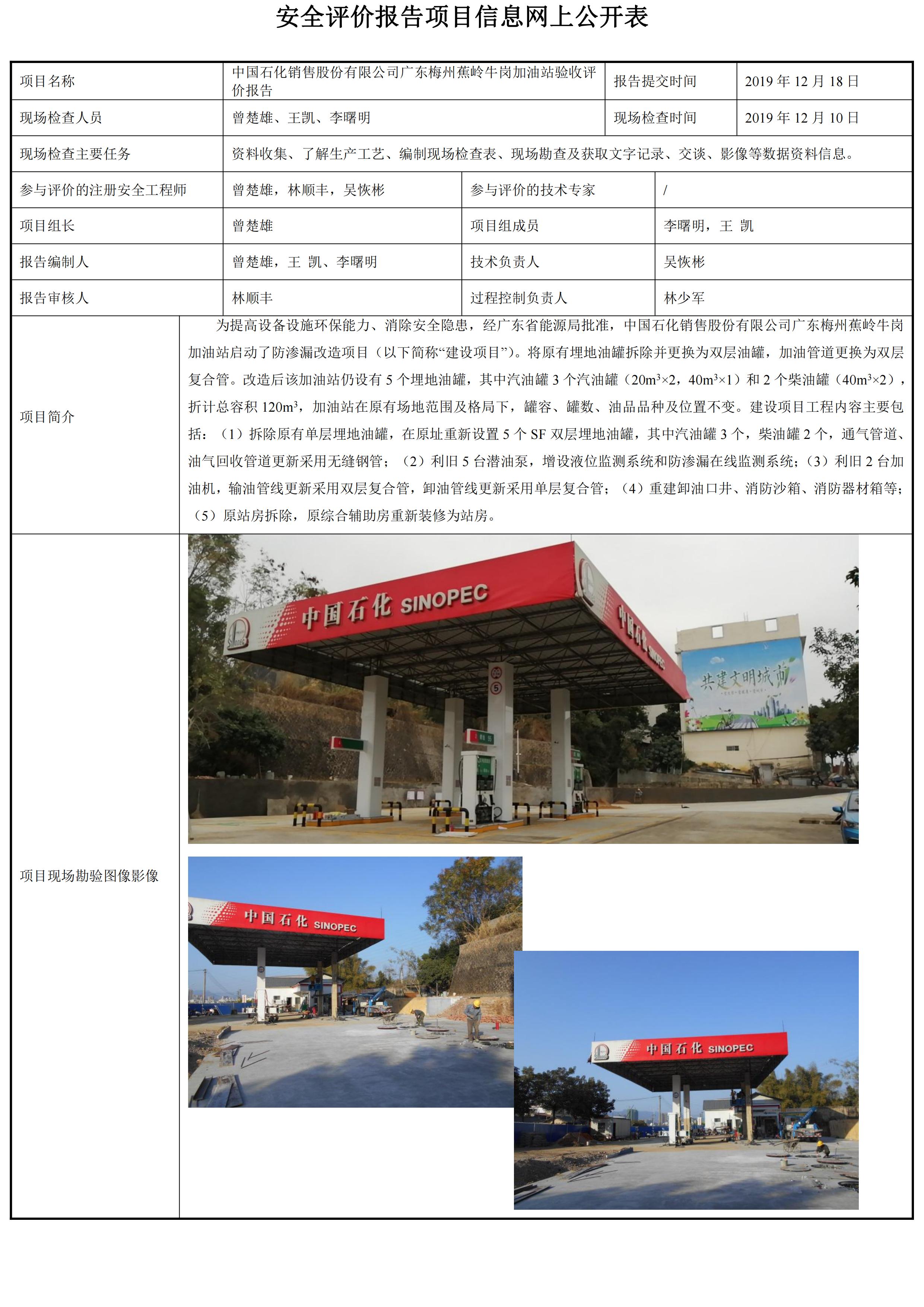 中国石化销售股份有限公司广东梅州蕉岭牛岗加油站防渗改造项目安全设施竣工验收安全评价