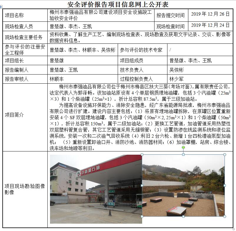 梅州市泰强油品有限公司建设项目安全设施竣工验收安全评价