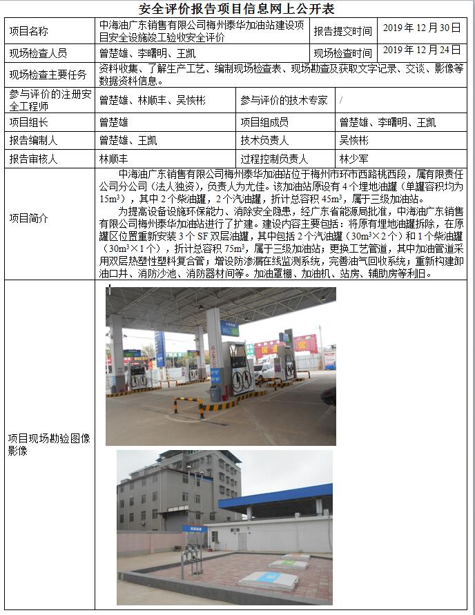 中海油广东销售有限公司梅州泰华加油站建设项目安全设施竣工验收安全评价