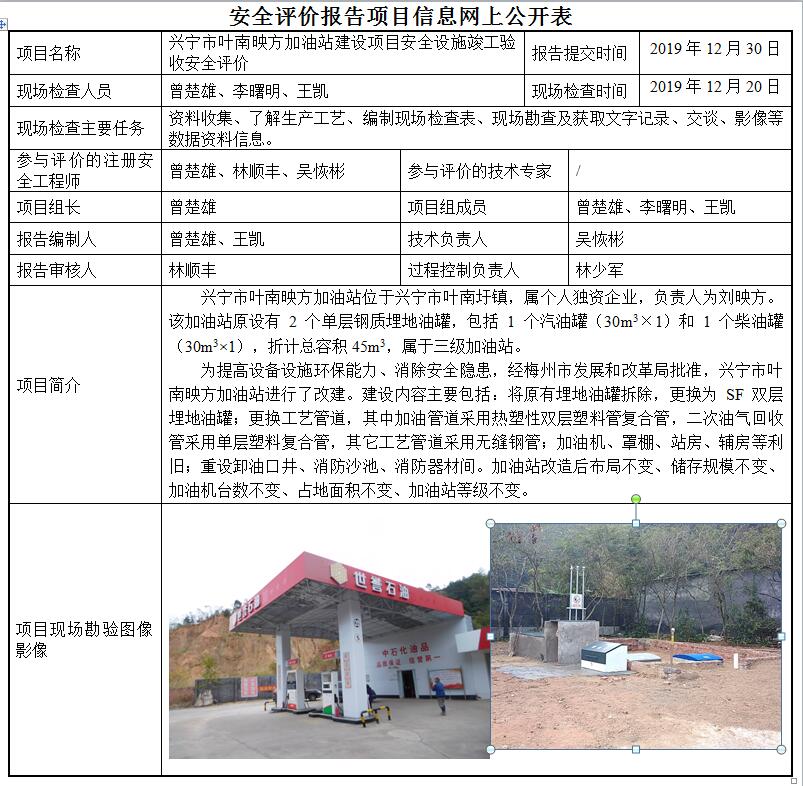 兴宁市叶南映方加油站建设项目安全设施竣工验收安全评价