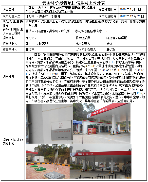 中国石化销售股份有限公司广东揭阳揭西河婆加油站改建项目安全设施竣工验收安全评价
