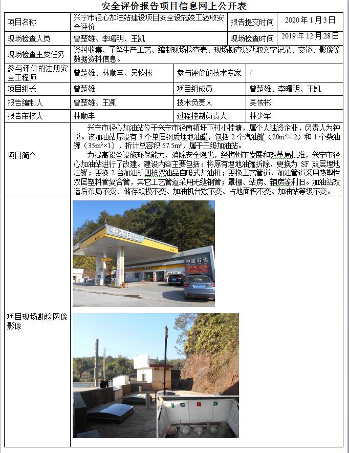 兴宁市径心加油站建设项目安全设施竣工验收安全评价