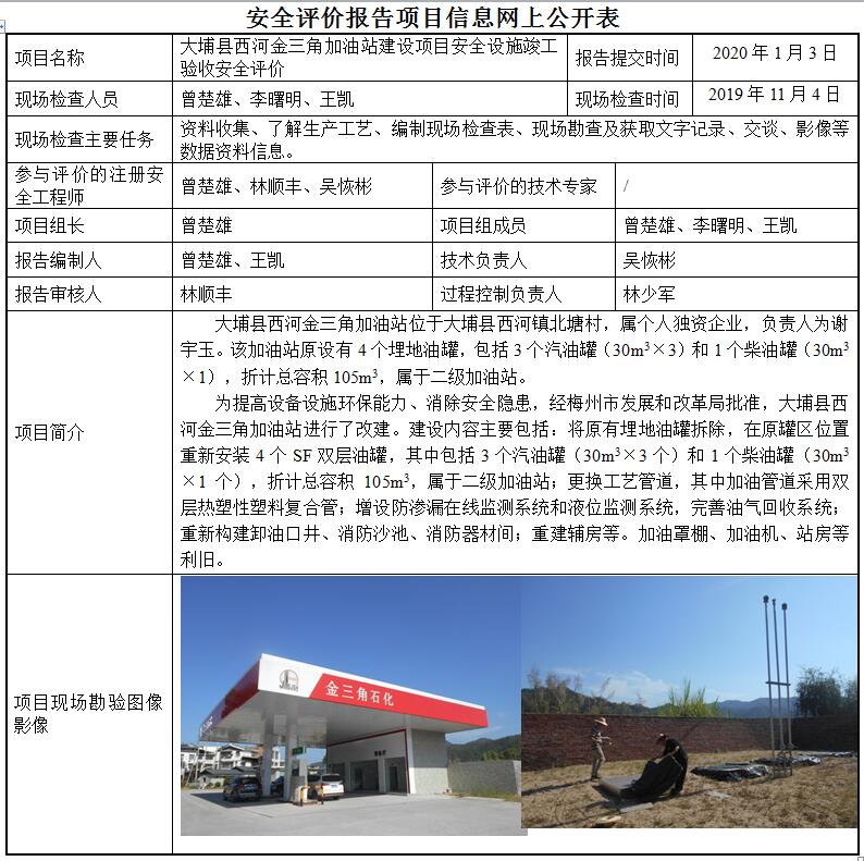 大埔县西河金三角加油站建设项目安全设施竣工验收安全评价
