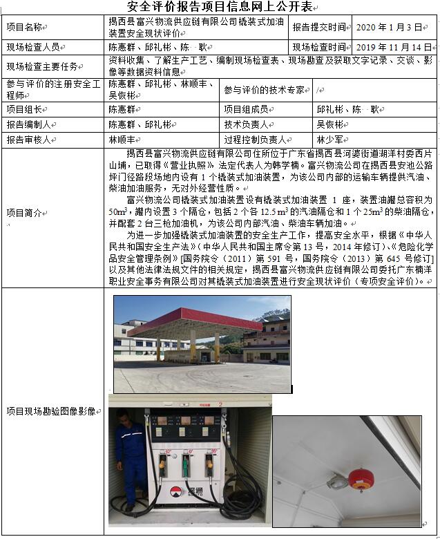 揭西县富兴物流供应链有限公司橇装式加油装置安全评价