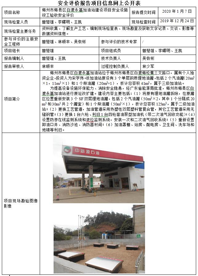 梅州市梅县区白渡永基加油站建设项目安全设施竣工验收安全评价