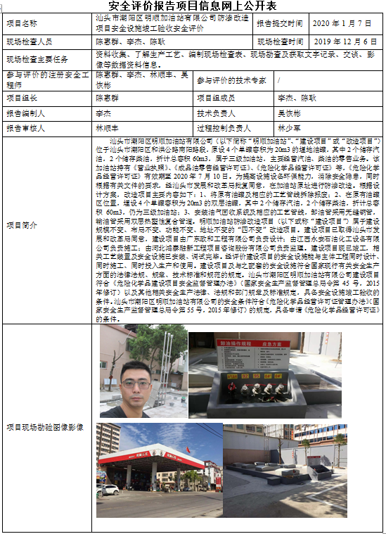 汕头市潮阳区明顺加油站有限公司防渗改造项目安全设施竣工验收安全评价