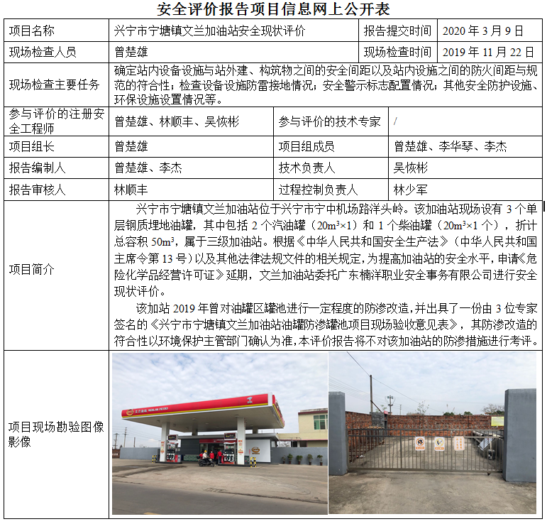兴宁市宁塘镇文兰加油站安全现状评价