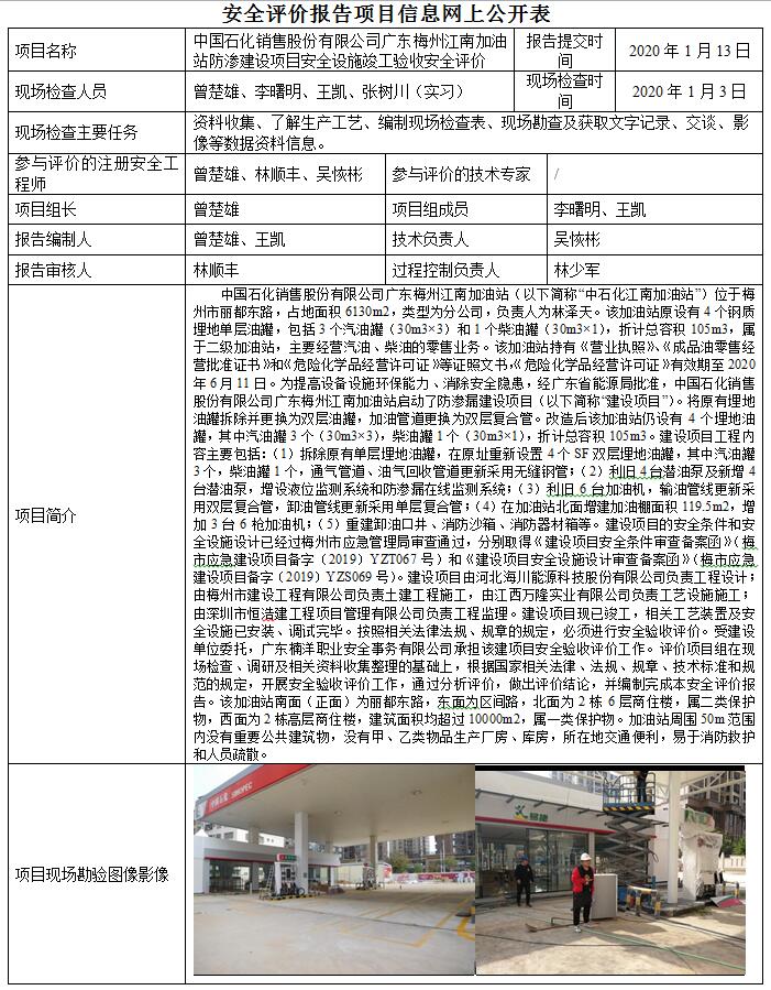 中国石化销售股份有限公司广东梅州江南加油站防渗建设项目安全设施竣工验收安全评价