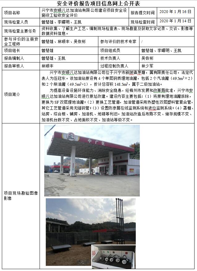 兴宁市安顺八达加油站有限公司建设项目安全设施竣工验收安全评价