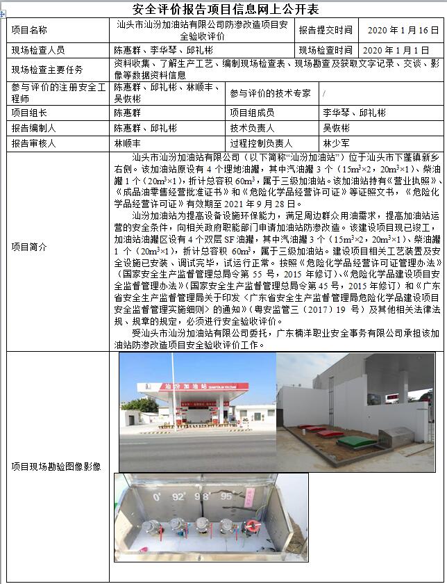 汕头市汕汾加油站有限公司防渗改造项目安全验收评价