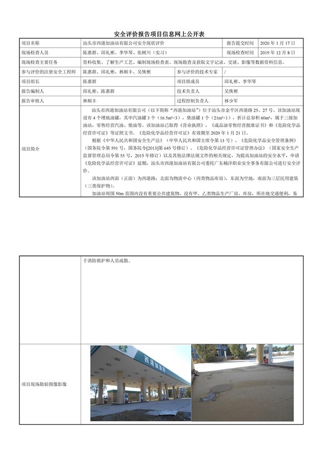 汕头市西港加油站有限公司安全现状评价
