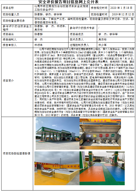 汕尾市城区捷胜加油站建设项目安全设施竣工验收安全评价