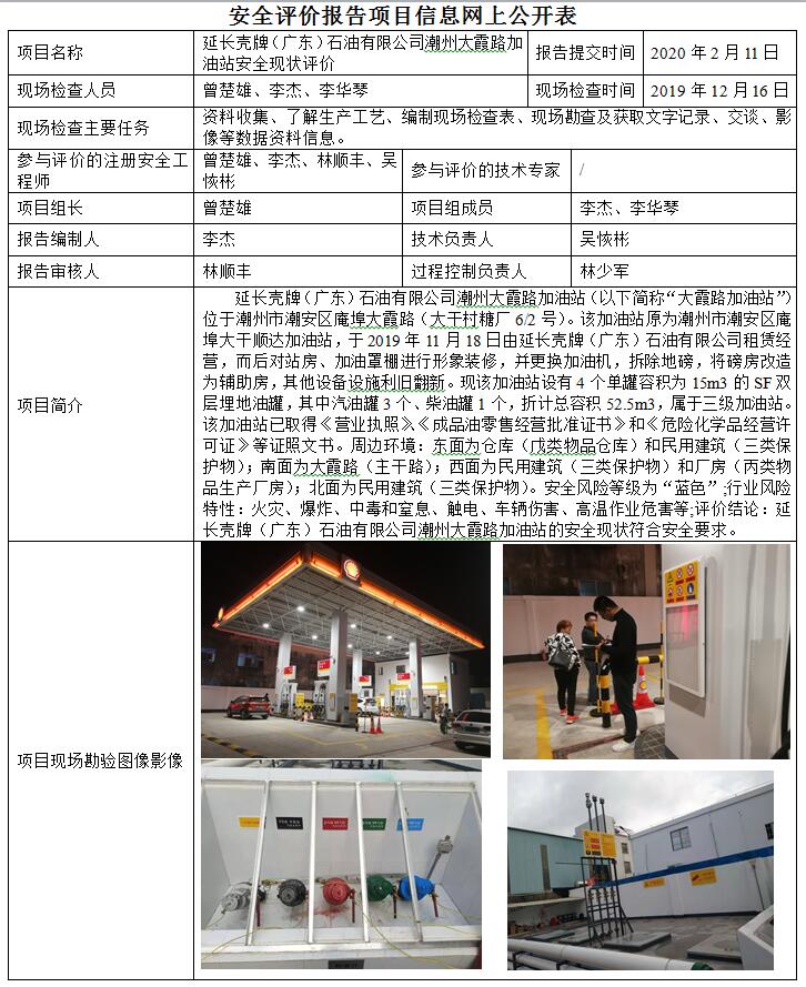 延长壳牌(广东)石油有限公司潮州大霞路加油站安全现状评价