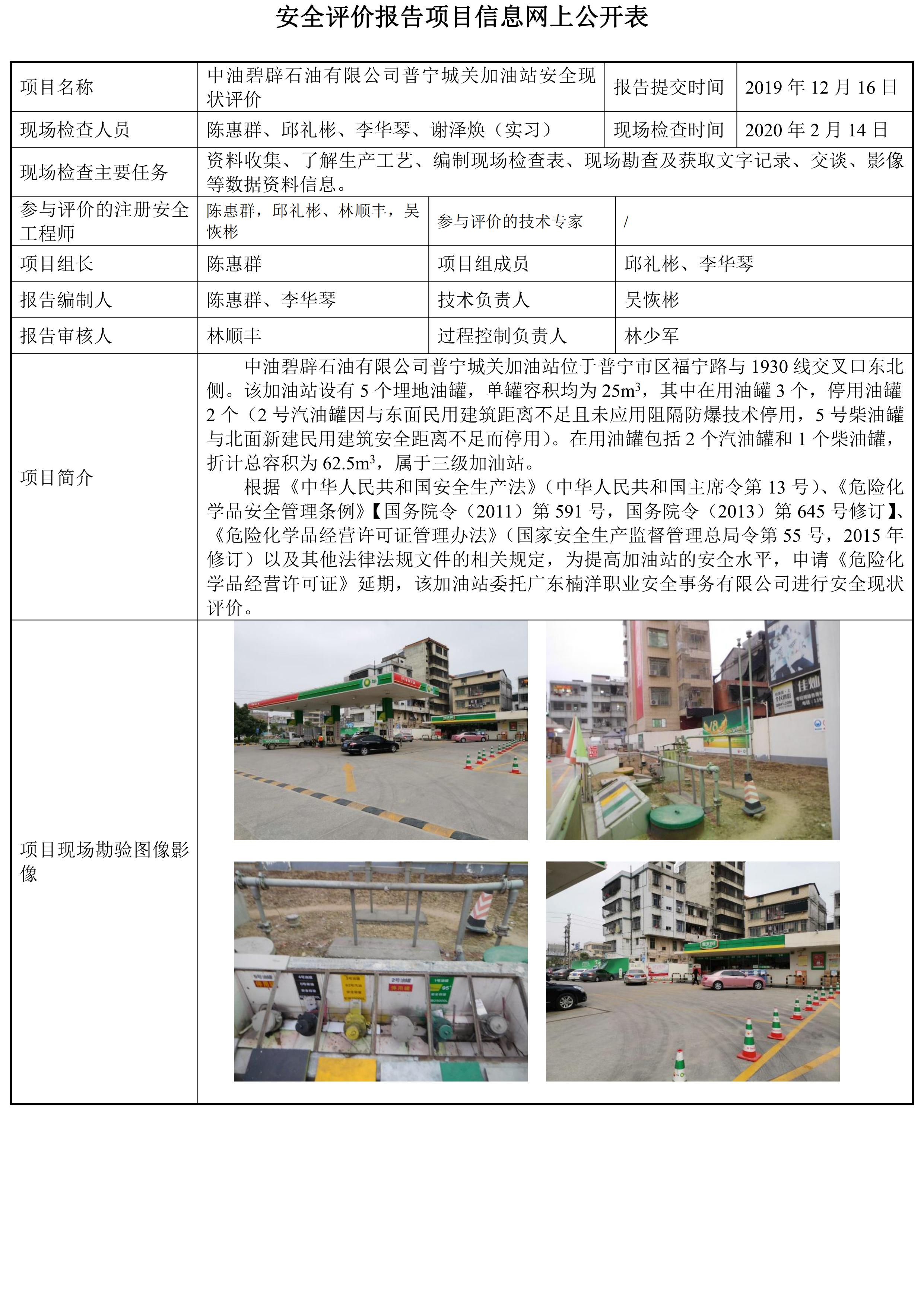 中油碧辟石油有限公司普宁城关加油站安全现状评价