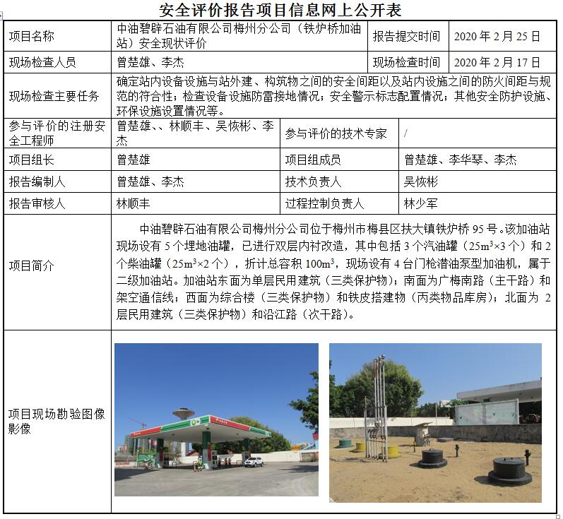 中油碧辟石油有限公司梅州分公司(铁炉桥加油站)安全现状评价