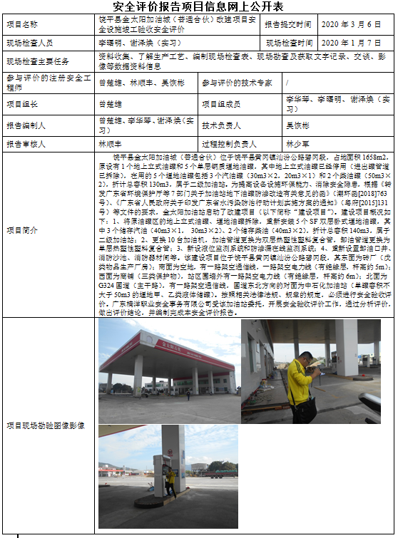 饶平县金太阳加油城(普通合伙)改建项目安全设施竣工验收安全评价