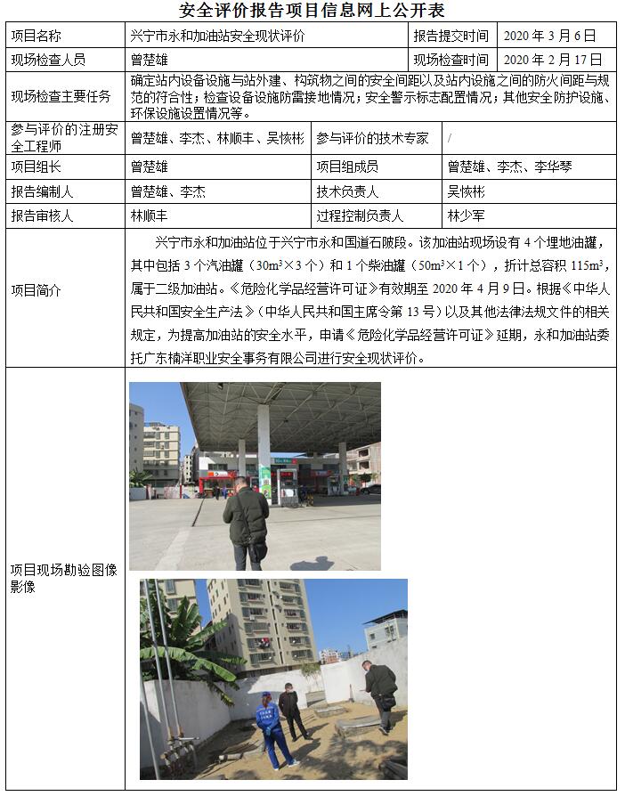 兴宁市永和加油站安全现状评价