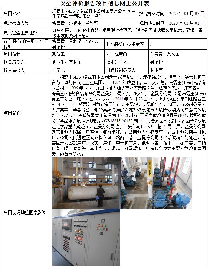 海霸王(汕头)食品有限公司金曼分公司危险化学品重大危险源安全评估