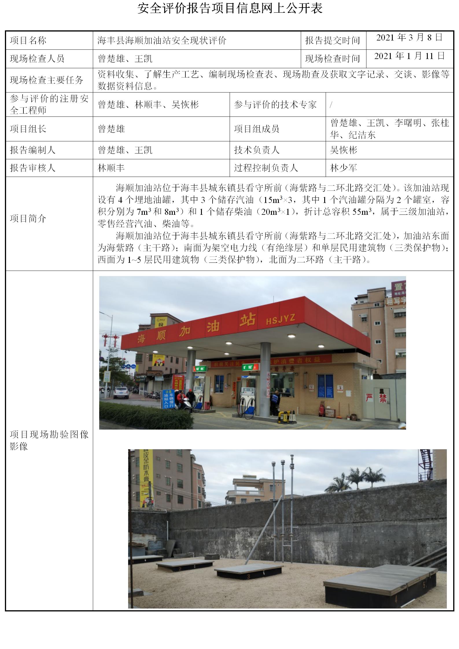 中国石化销售股份有限公司广东汕头澄海隆都加油站安全现状评价