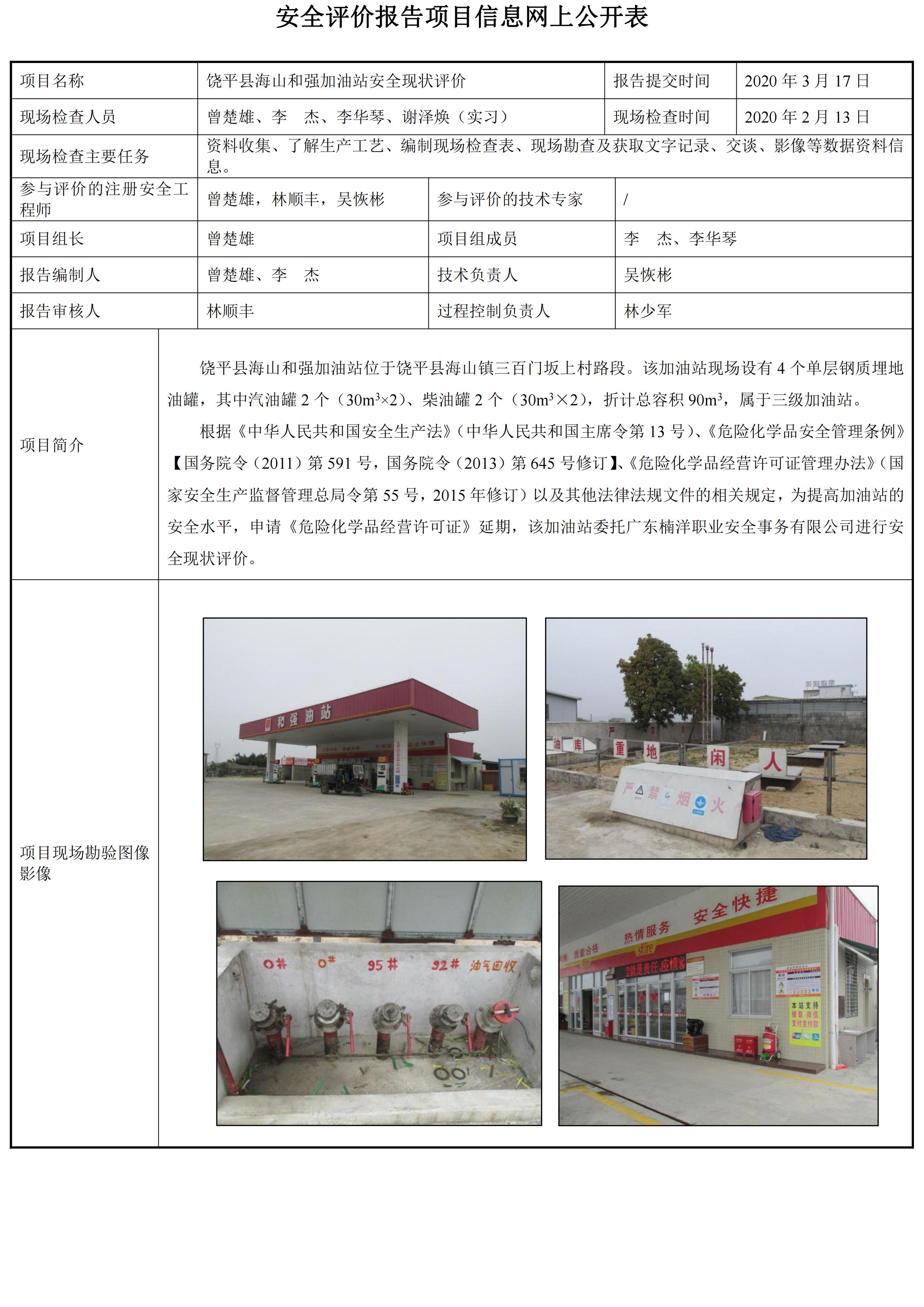 饶平县海山和强加油站安全现状评价