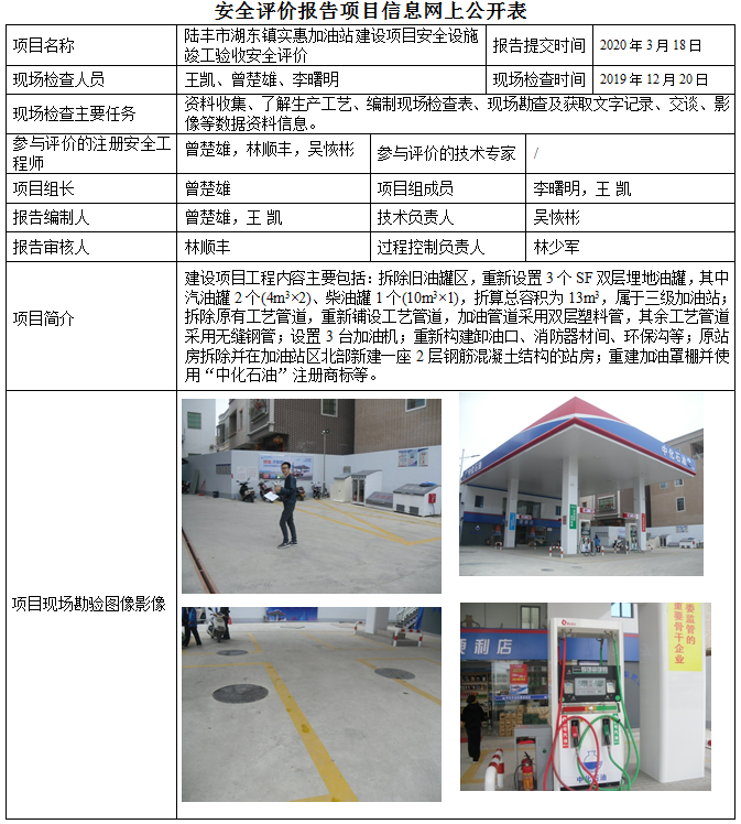 陆丰市湖东镇实惠加油站建设项目安全设施竣工验收安全评价