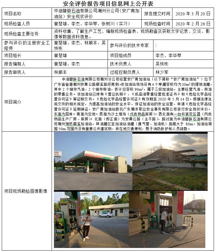 中油碧辟石油有限公司潮州分公司(安广南加油站)安全现状评价