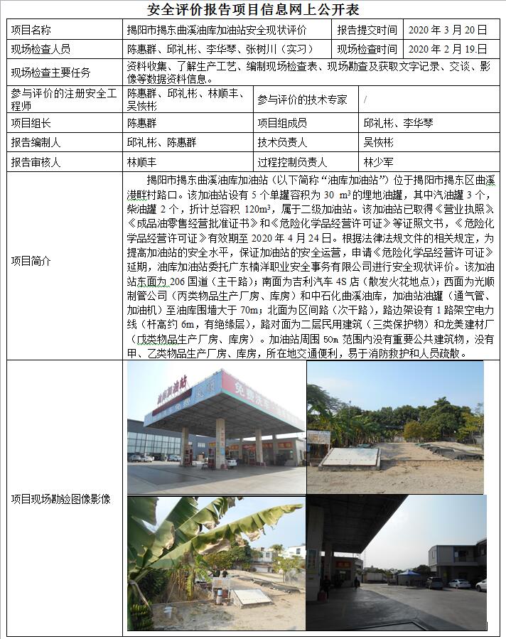 揭阳市揭东曲溪油库加油站安全现状评价