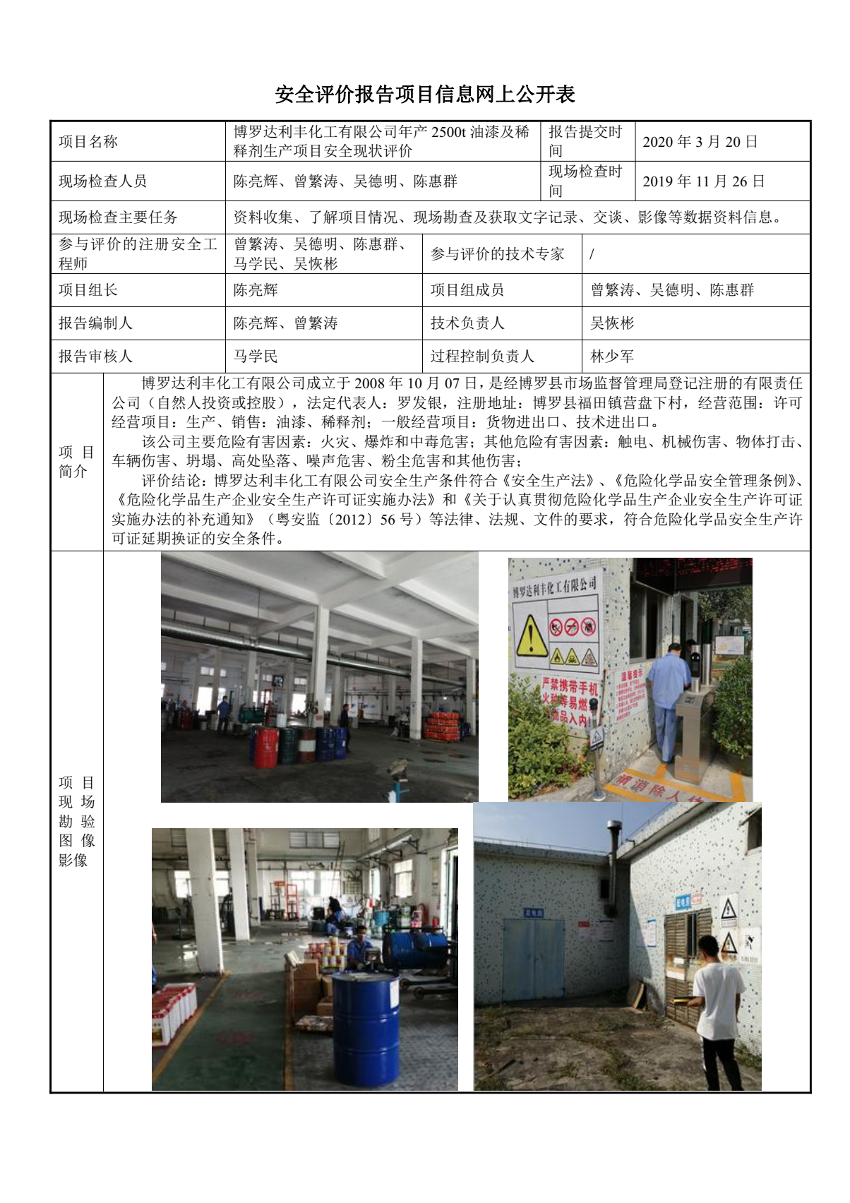 博罗达利丰化工有限公司年产2500t油漆及稀释剂生产项目安全现状评价