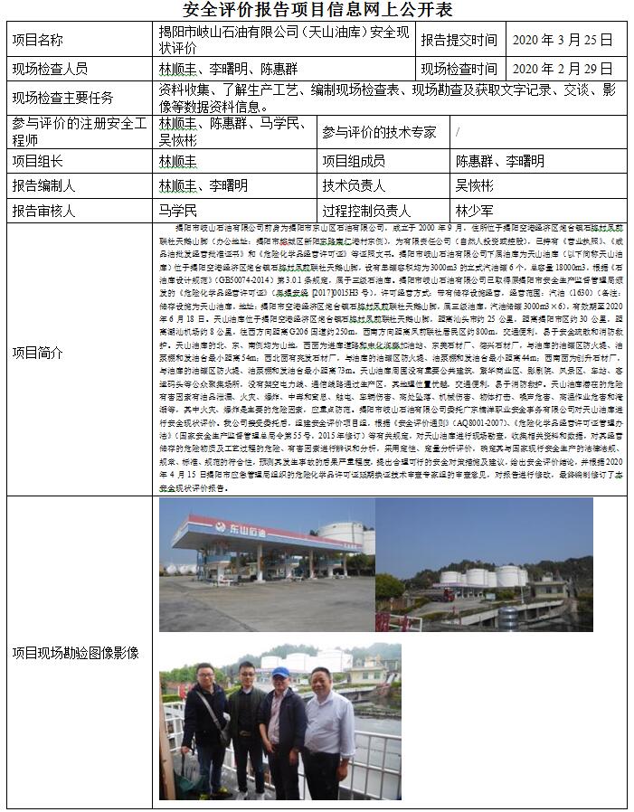 揭阳市岐山石油有限公司(天山油库)安全现状评价